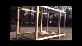 A greenhouse made out of old recycled windows in built. This video illustrates the first stage of construction, making a good foundation out of concrete blocks.